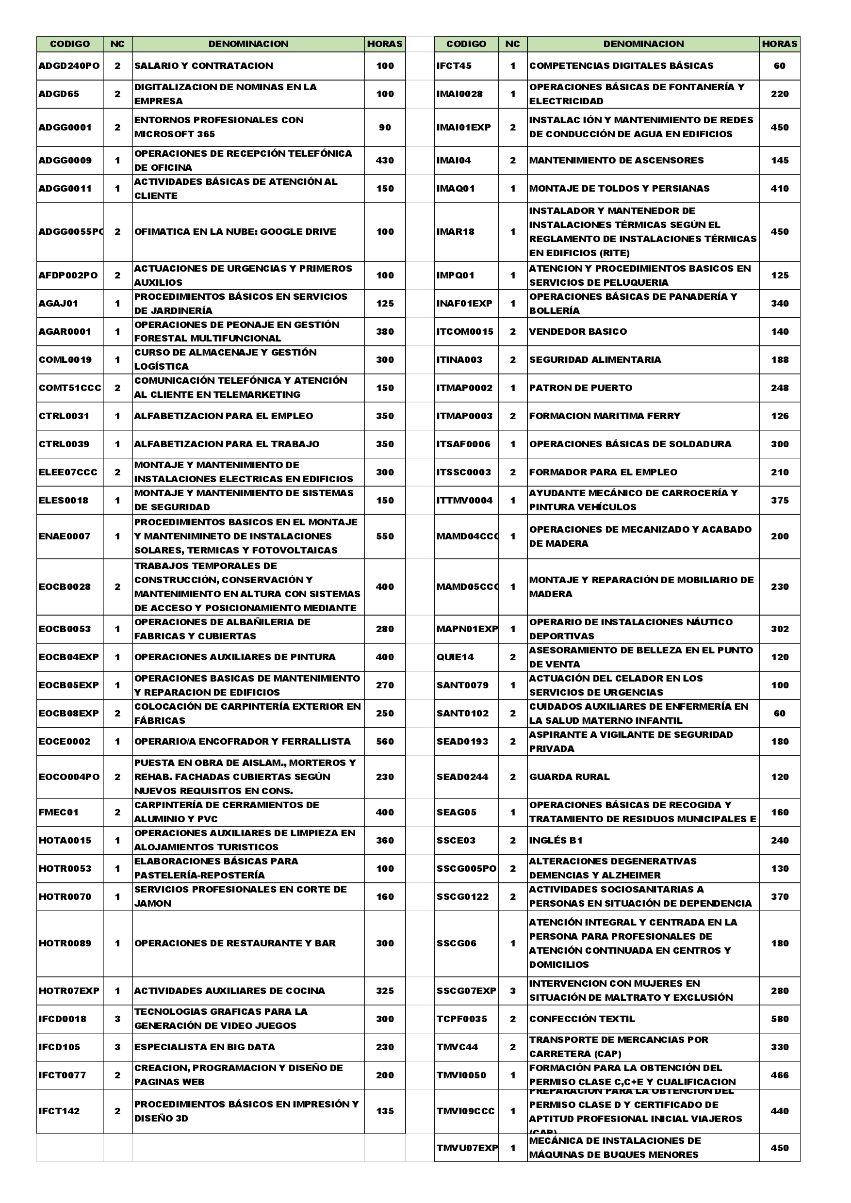 NUEVA PROPUESTA DE ACCIONES FORMATIVAS PARA LA CONVOCATORIA PROVINCIAL DE FORMACIÓN PARA EL EMPLEO