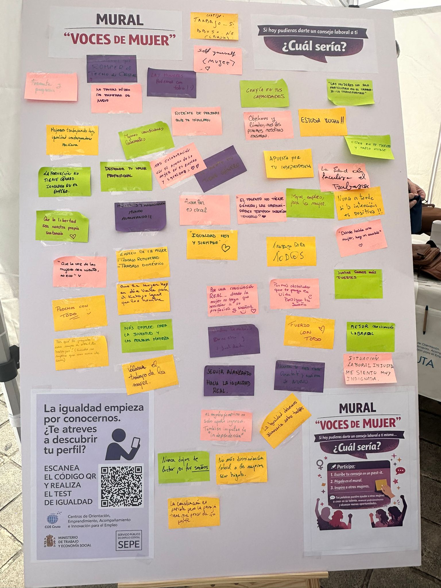 La jornada incluyó diversas actividades participativas abiertas al público, como el mural “Voces de mujeres”, en el que las personas asistentes pudieron compartir mensajes y reflexiones, así como un test de igualdad que generó un espacio de diálogo y concienciación en torno a esta materia.